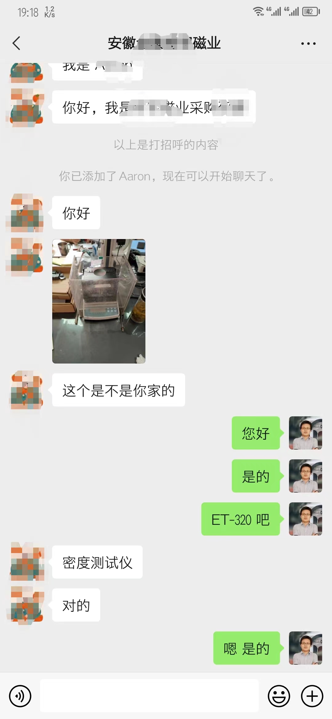 安徽老客戶,又來采購ET-320密度測試儀,用于測量各類磁性材料的密度。