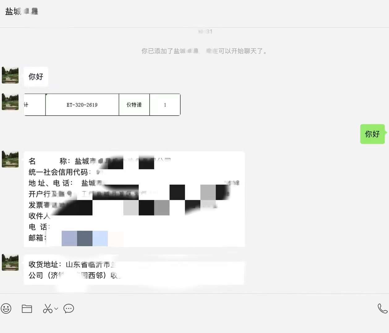 這個(gè)加上微信就發(fā)開(kāi)票信息和收貨地址的客戶,其實(shí)這臺(tái)ET-320密度計(jì)用戶首次來(lái)咨詢的時(shí)間是在2月初~